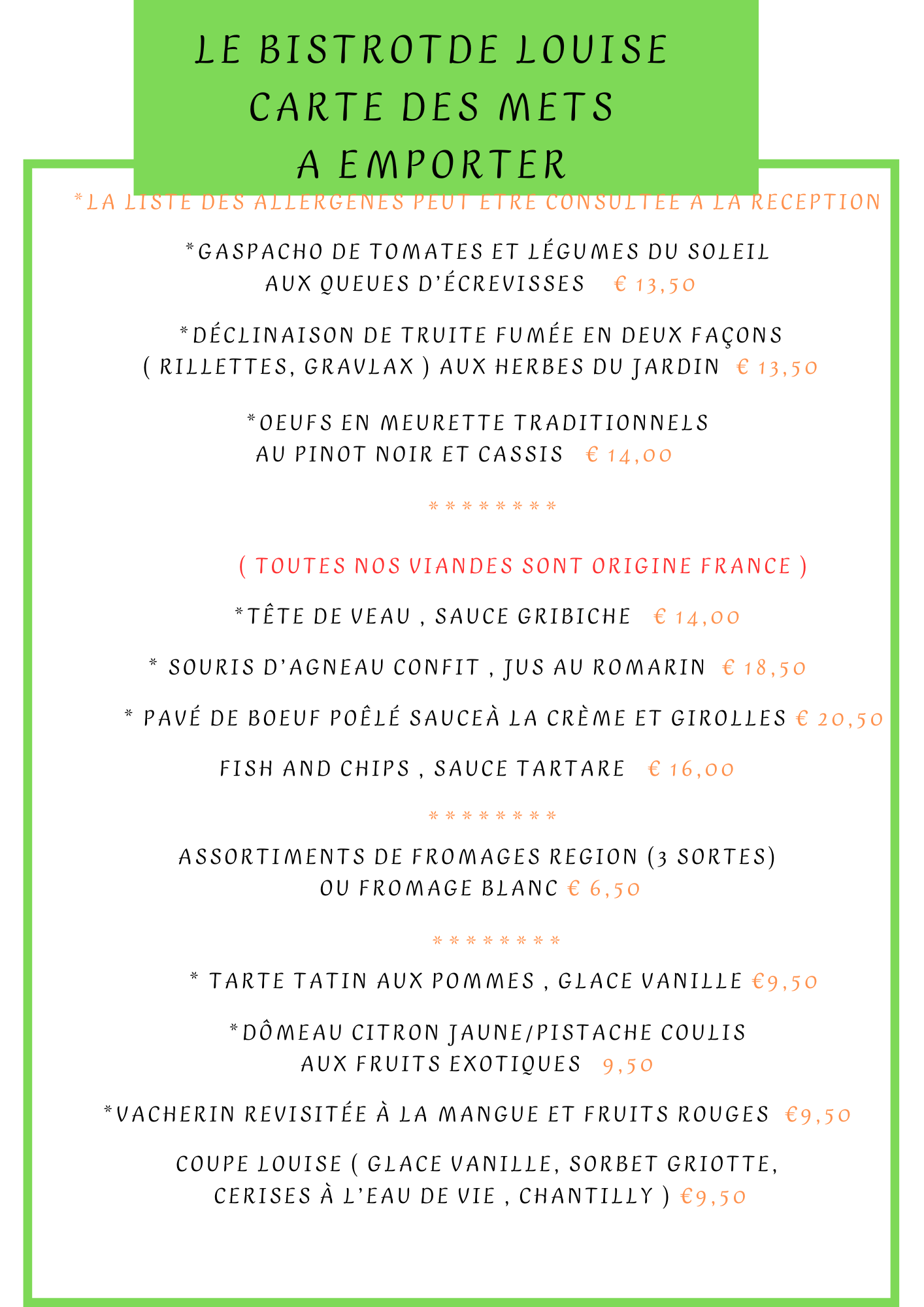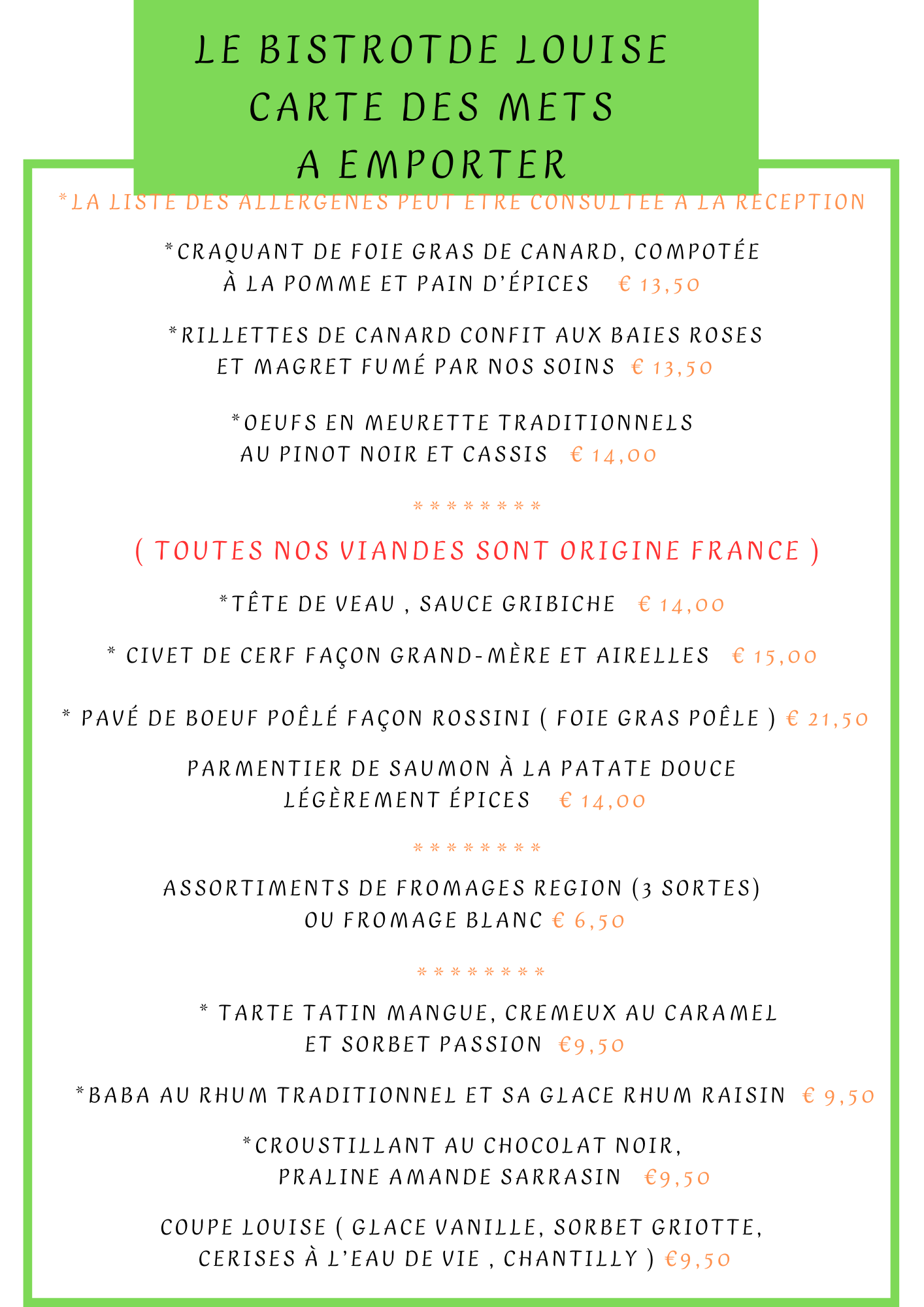Si vous êtes propriétaire d'un gîte ou d'une chambre d'hôtes, Régis peut également vous fournir des menus à emporter pour vos clients. Cela leur permettra de profiter d'un repas délicieux et pratique, sans avoir à se soucier de la préparation.Quelle que soit l'occasion, Régis mettra tout en œuvre pour vous offrir un service de qualité et des menus savoureux.